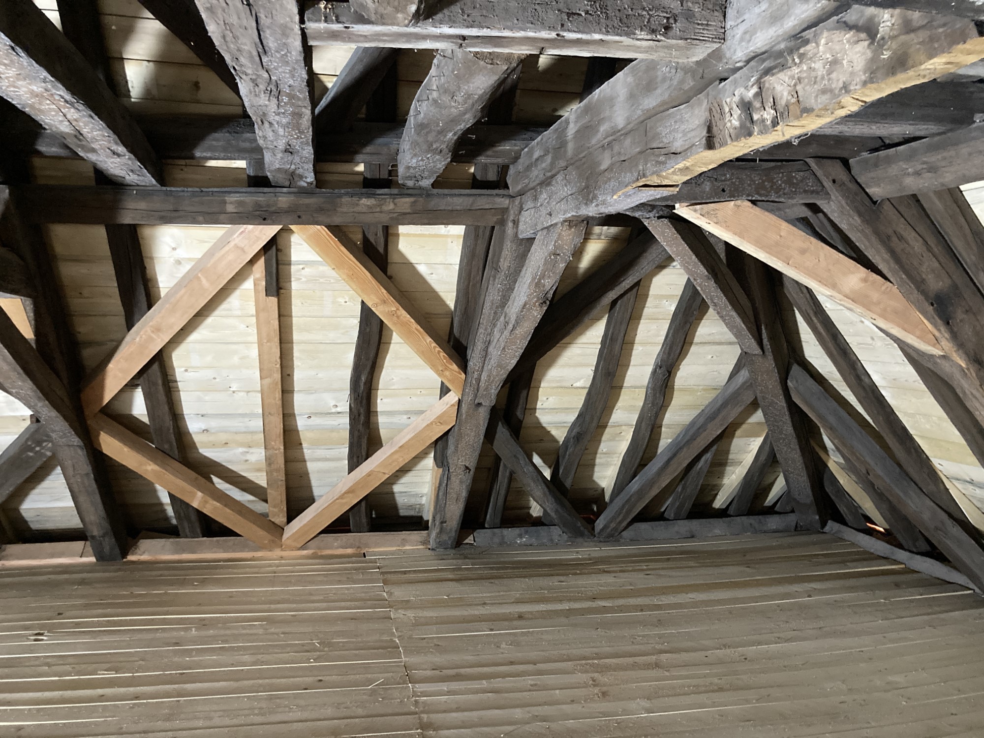 Im Zuge der Dachstuhlsanierung des denkmalgeschützten Pfarrhauses in Annweiler am Trifels aus dem 18. Jahrhundert wurde die historische Holzkonstruktion sorgfältig instand gesetzt. Teilweise geschädigte Hölzer wurden nach eingehender Bestandsanalyse zimmermannsmäßig ausgetauscht oder ergänzt, wobei bestehende Konstruktionen, Holzverbindungen und Querschnitte weitgehend erhalten blieben. Ziel der Maßnahme war es, die Standsicherheit und Dauerhaftigkeit des Dachstuhls zu gewährleisten und zugleich den denkmalpflegerischen Anforderungen sowie dem ursprünglichen konstruktiven Charakter des Bauwerks gerecht zu werden.